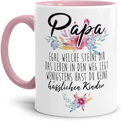 Tasse Mit Spruch Papa Wenigstens Hast Du Keine Hasslichen Kinder Geschenk Idee Witzig Tochter Sohn Innen Henkel Rosa Amazon De Kuche Haushalt