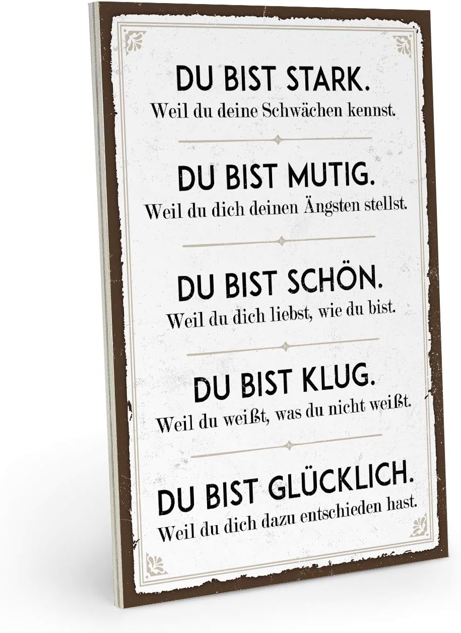 Artfaves Holzschild Mit Spruch Du Bist Stark Mutig Schon Klug Glucklich Vintage Shabby Deko Wandbild Turschild Amazon De Kuche Haushalt