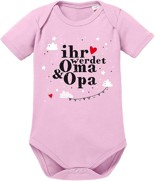 Clothinx Baby Body Biobaumwolle Schwangerschaft Geburt Ihr Werdet Oma Und Opa Ein Supersusses Uberraschungsgeschenk Fur Die Werdenden Grosseltern Hellrosa Weiss Grosse 50 56 Amazon De Bekleidung
